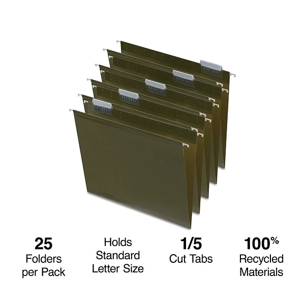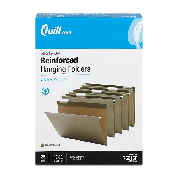 Designed with included tabs, these Quill Brand reinforced hanging folders feature built-in adjustments that allow you to insert the tabs in a staggered pattern. Once the tabs are installed, your staff can easily locate important information in a single glance.