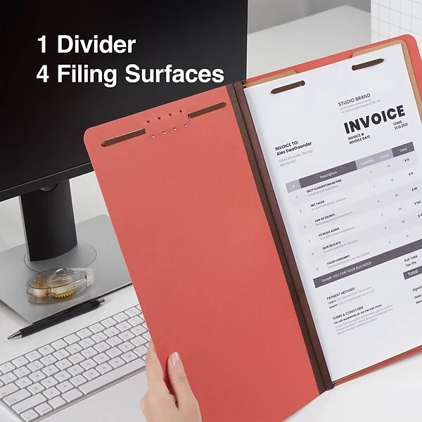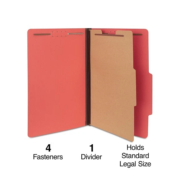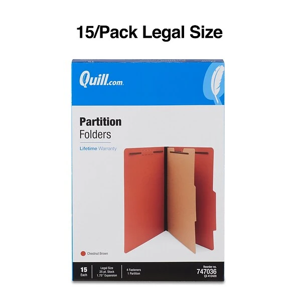 Quill Brand® 2/5-Cut Tab Pressboard Classification File Folders, 1-Partition, 4-Fasteners, Legal, Brown, 15/Box (747036)