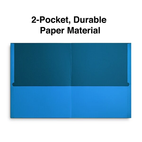 - Quill Brand® 2-pocket folders include a die-cut business card holder
