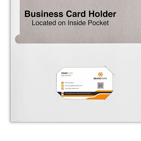2-pocket folders include a die-cut business card holder