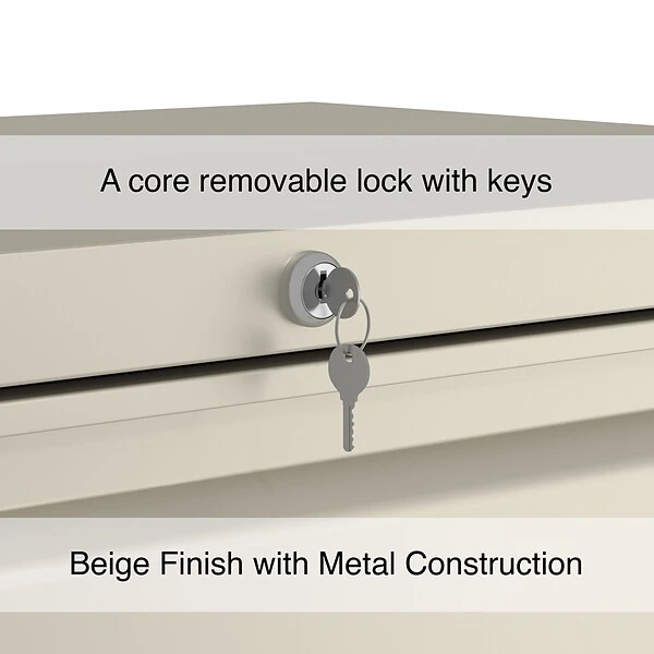 Get a durable, high-capacity solution for document and record storage with this four-drawer commercial lateral file cabinet. This cabinet easily accommodates large numbers of letter and legal-sized files with four 30-inch-wide drawers and offers easy access to stored materials with ball-bearing slide suspensions and wide drawer pulls. The built-in lock makes it easy to secure stored documents, perfect for managing access to sensitive materials. This putty commercial lateral file cabinet offers long-lasting durability with its rugged metal construction and corrosion-resistant enamel finish.