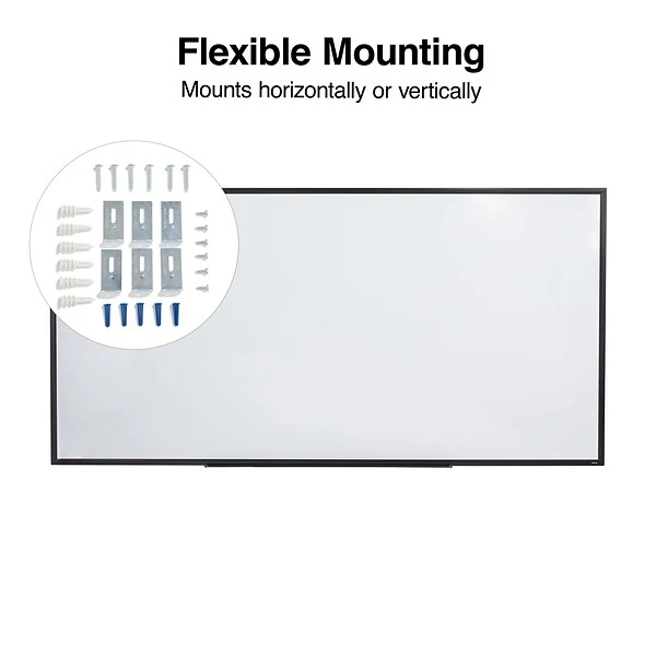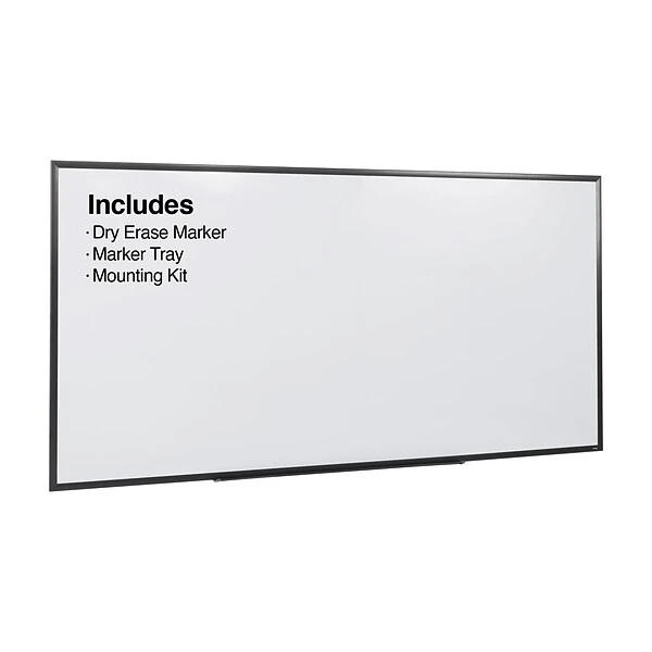 - Package includes: whiteboard, mounting kit, marker tray, dry erase marker
