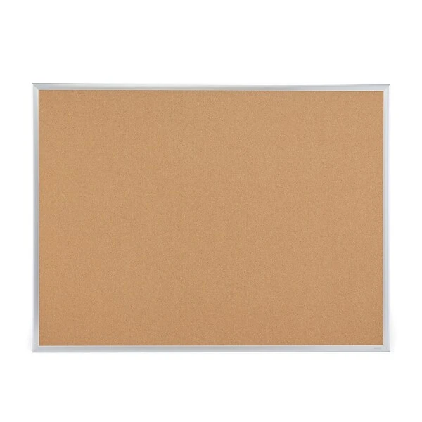 Share important information with this standard cork bulletin board. The generous surface area of this corkboard lets you post large pictures, posters and other items for easy viewing. Featuring a cork surface, this bulletin board securely holds thumbtacks or pushpins and naturally closes over pinholes when items are removed. The factory-installed mounting system lets you easily hang this cork bulletin for immediate use, and the silver aluminum frame adds a finishing touch.