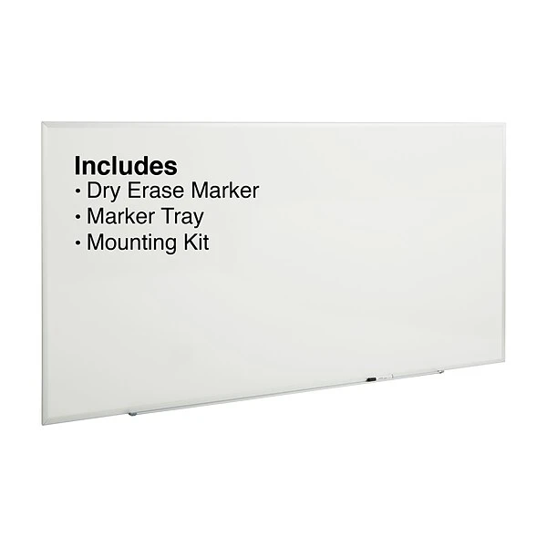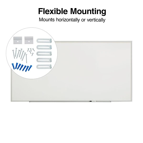 Make drawings and writings easy for everyone in the room to read with this standard melamine whiteboard. The board is encased with an aluminum frame to provide durability and a professional appearance, while the smooth surface makes it easy to write on. This standard aluminum-frame melamine whiteboard includes mounting hardware that lets you hang the board either vertically or horizontally, and it comes with a built-in tray for quick access to writing materials and erasers.