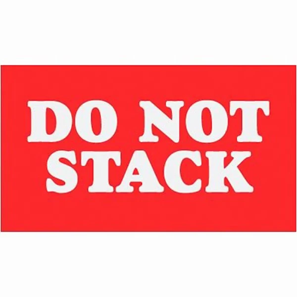 Self-adhesive “DO NOT STACK” labels for international box packaging and pallet shipping. See Product Details chart for more information.